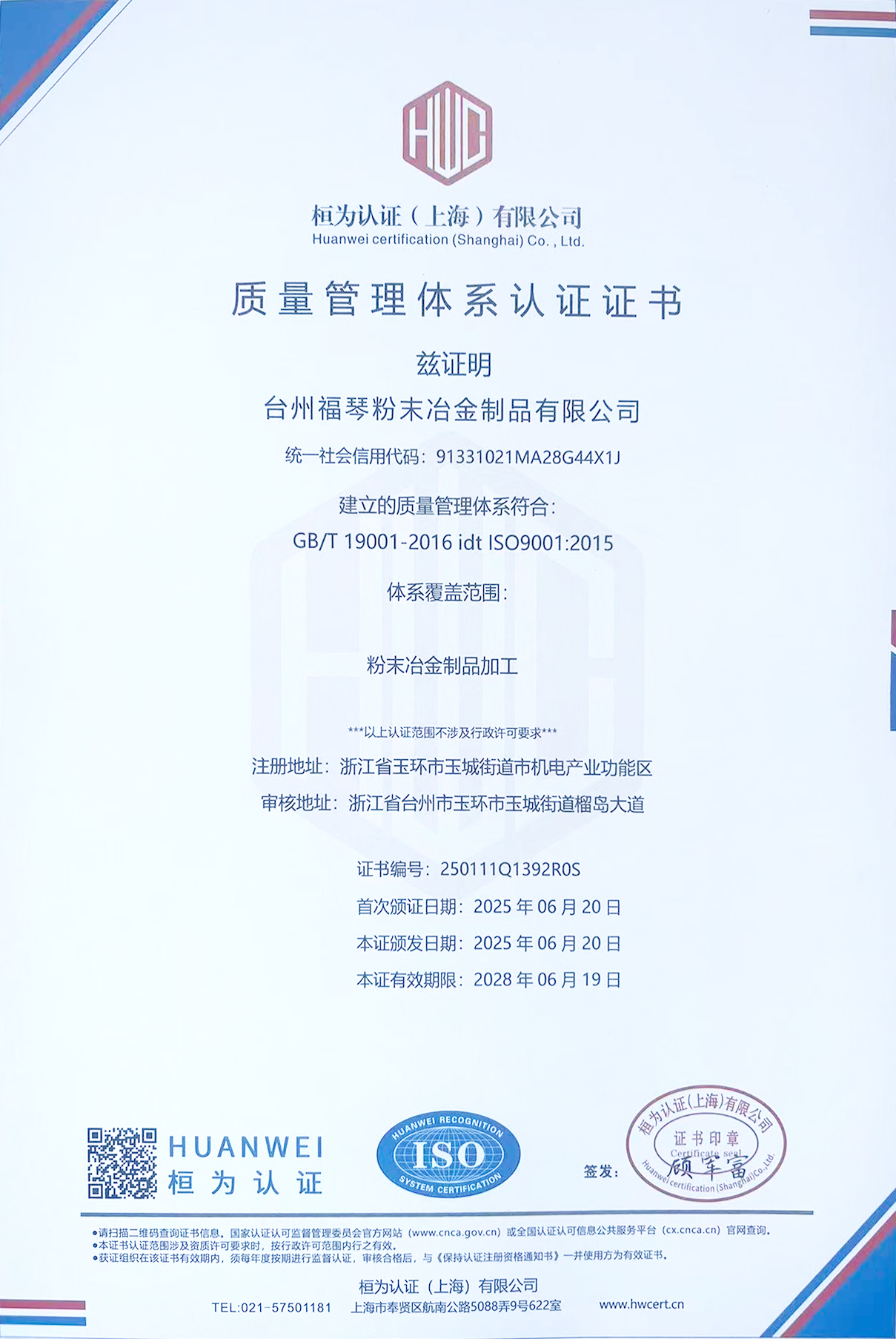 台州福琴粉末冶金制品有限公司(玉环科轩机械有限公司),是一家专业生产粉末冶金(铁基、铜基、不锈钢)制品的企业,公司地处东海之滨,有“海上花园”之称的浙江省玉环县。